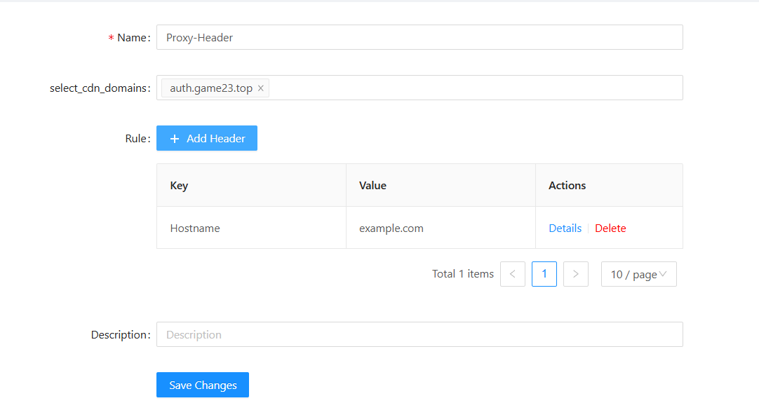 The Proxy Header feature allows you to define custom HTTP headers that the CDN edge node will include in origin requests. These headers are added only when the CDN communicates with your origin server, not to the client responses.