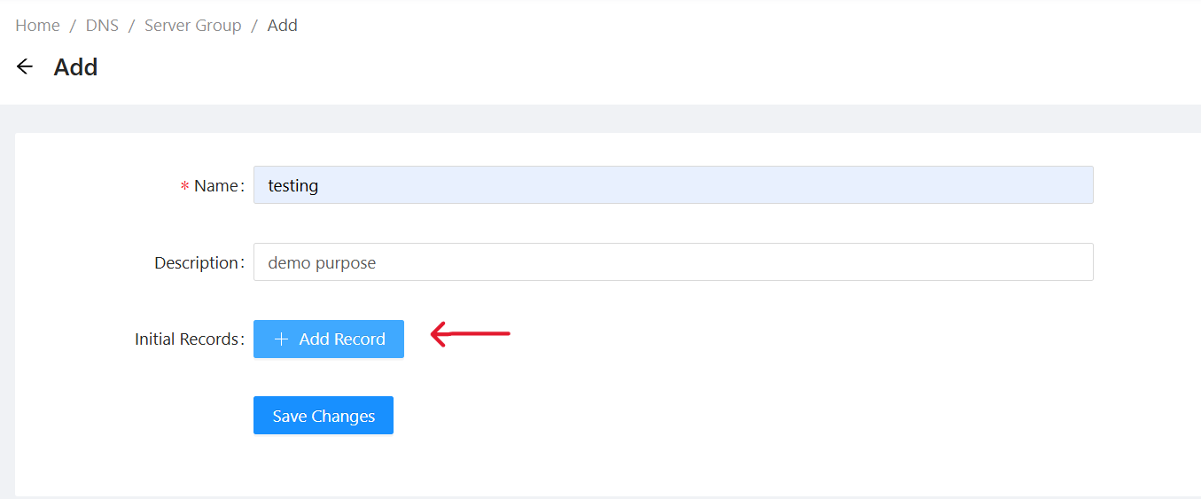 - if you plan to add multiple DNS Server into the same DNS GROUP, ensure that NS record that map to IP Address of each individual DNS Servers are present in the DNS Record Initialization of the server group