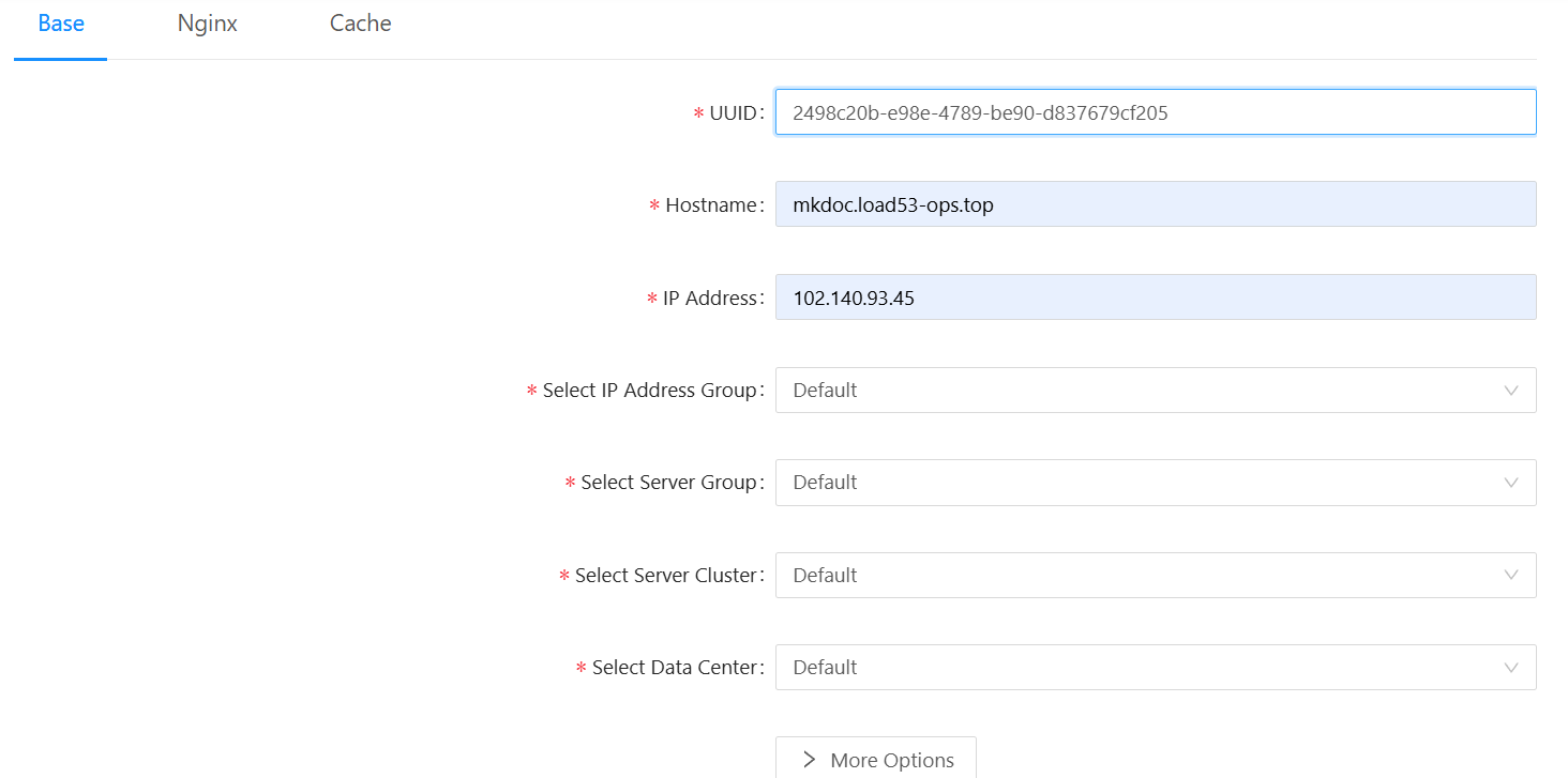 Fill in the Value that coresponds to the Load Proxy node such as Hostname, IP Address. Select relavance tag for the 4 group settings. Server UUID can be found in the