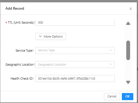 Define The DNS Record content that equal to IP address of previously declared HealthCheck Task. Then, fill in