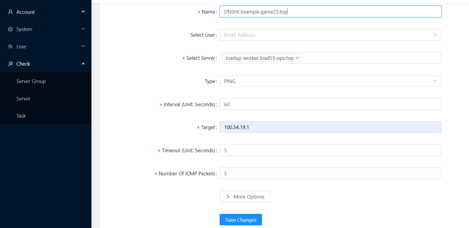Define a new task to monitor target IP. Select the LoadUP-worker node that is responsible to execute the monitoring task.