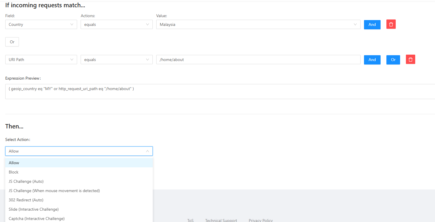 | 选择CDN域名 | 该规则适用的CDN域名列表 |