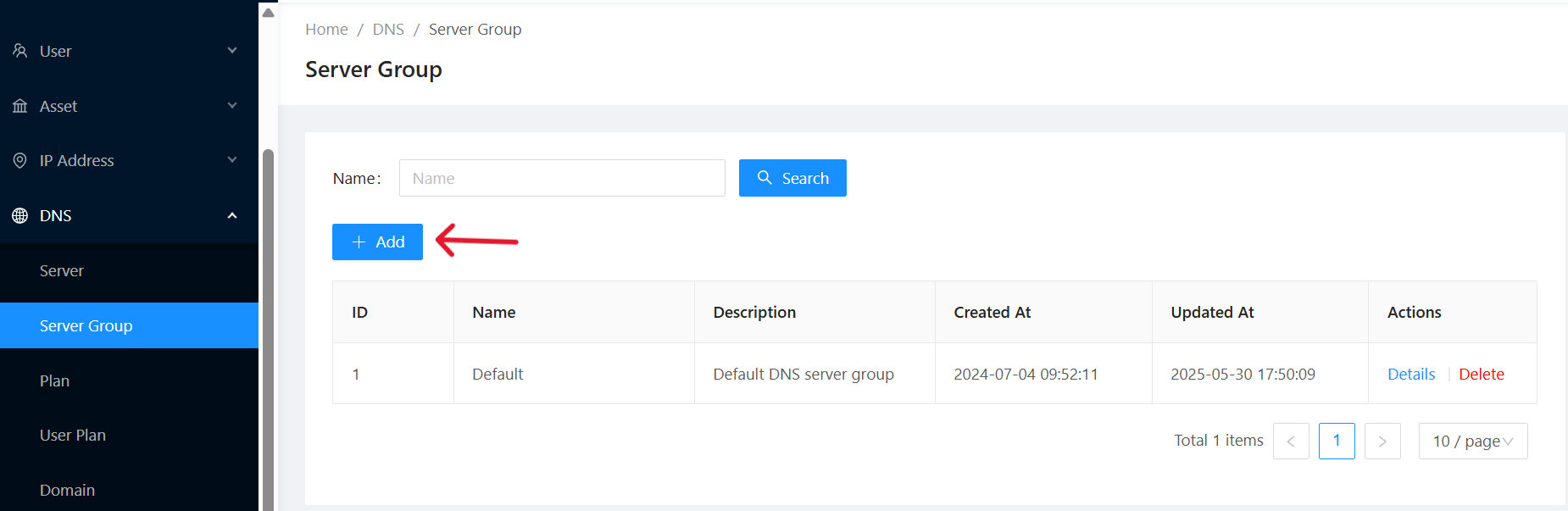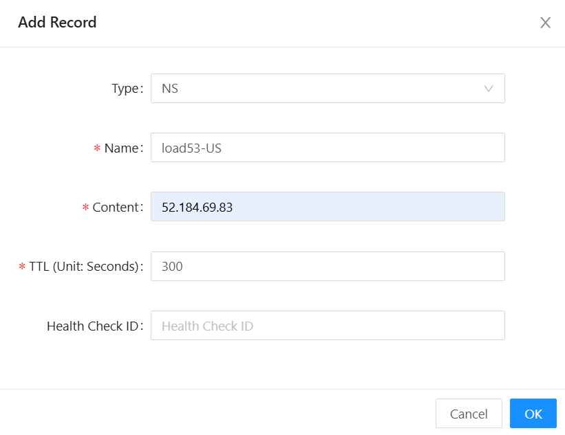 - 若计划在同一DNS组中添加多个DNS服务器,请确保该服务器组的DNS记录初始化中已包含指向每个DNS服务器IP地址的NS记录