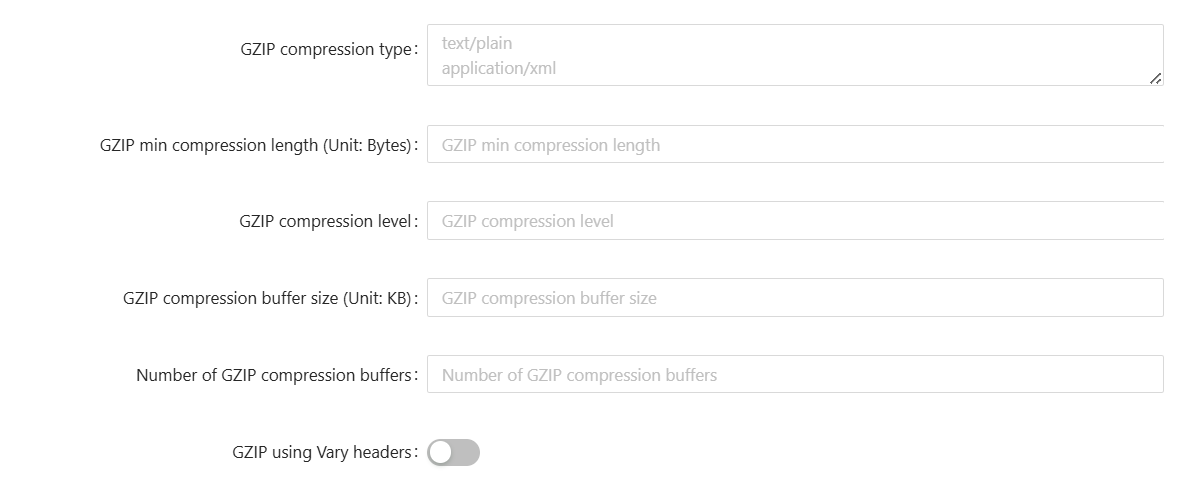 | GZIP 最小压缩长度(单位:字节) | 仅压缩大于此字节大小的响应。 |