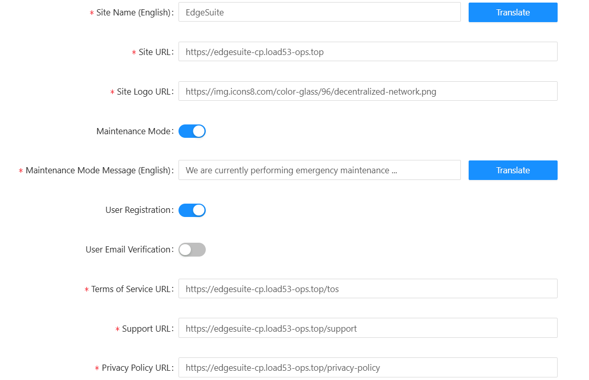 | 站点名称(英文) | 在用户界面中显示的 EdgeHit 平台名称。 |